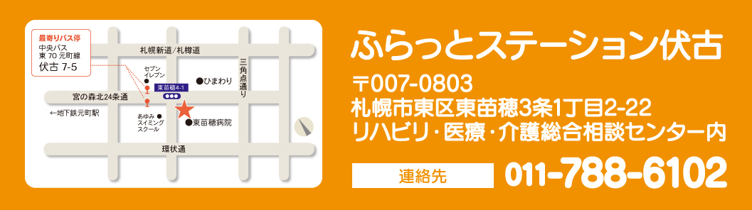 〒007-0803 札幌市東区東苗穂3条1丁目2-22 リハビリ・医療・介護総合相談センター内