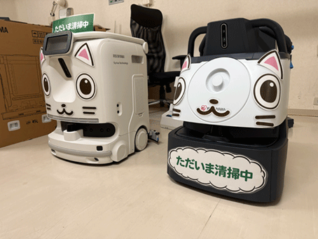 奥はほこりを除去するロボット、手前は水拭きしてくれるロボットです。