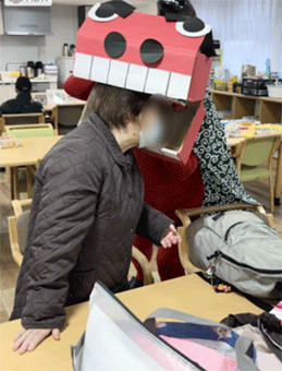 獅子舞が利用者さまの前を回ると、